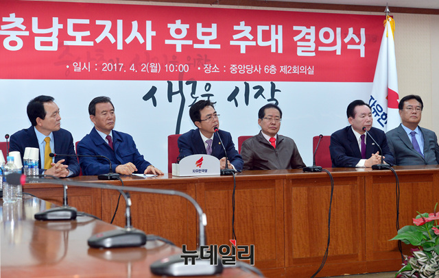 이인제 자유한국당 전 최고위원이 2일 오전 서울 여의도 자유한국당 중앙당사에서 열린 충남도지사 후보 추대 결의식에 참석해 발언하고 있다.