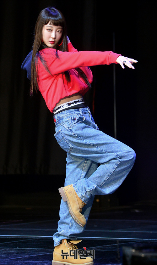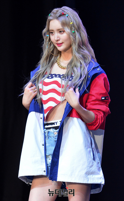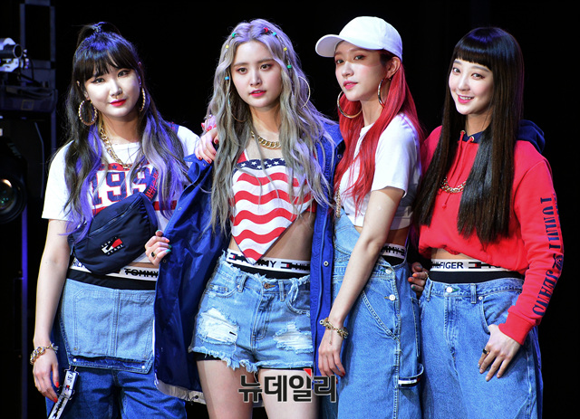 그룹 이엑스아이디(EXID : LE, 정화, 하니, 혜린)가 2일 오후 서울 중구 메사홀에서 열린 신곡 '내일해' 발매 기념 쇼케이스에 참석해 포즈를 취하고 있다.