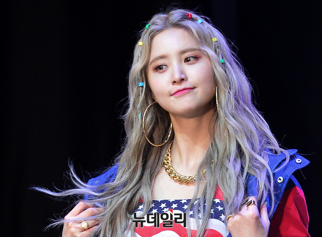 그룹 이엑스아이디(EXID : LE, 정화, 하니, 혜린) 정화가 2일 오후 서울 중구 메사홀에서 열린 신곡 '내일해' 발매 기념 쇼케이스에 참석해 포즈를 취하고 있다.