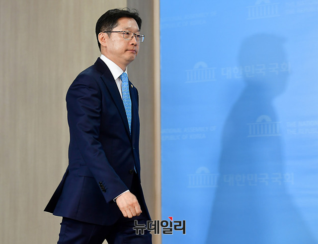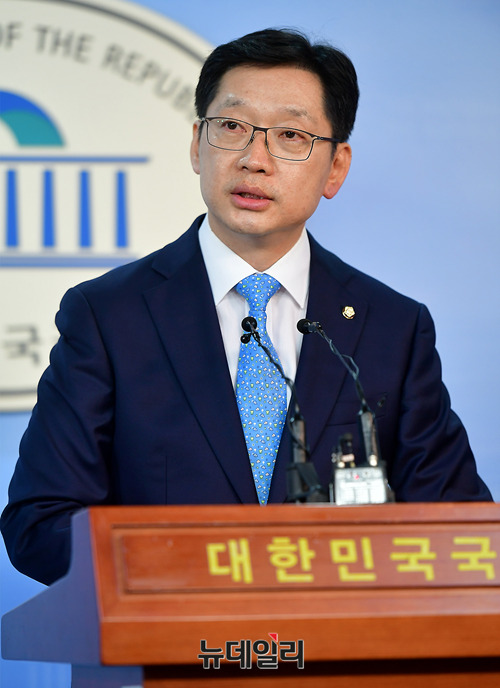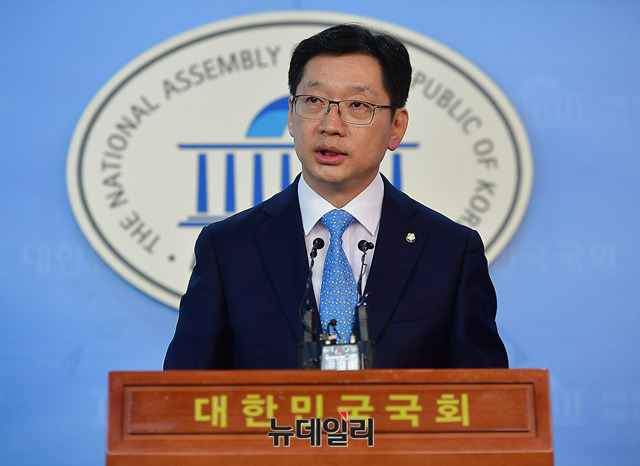 김경수 더불어민주당 의원이 2일 오후 국회 기자회견장에서 6월 지방선거에서 경남도지사 출마를 공식화 하고 있다. 더불어민주당은 앞서 공민배, 공윤권, 권민호 경남도지사 예비후보를 초청해 간담회를 갖고 김 의원을 도지사 후보로 추대하기로 했다고 밝혔다.