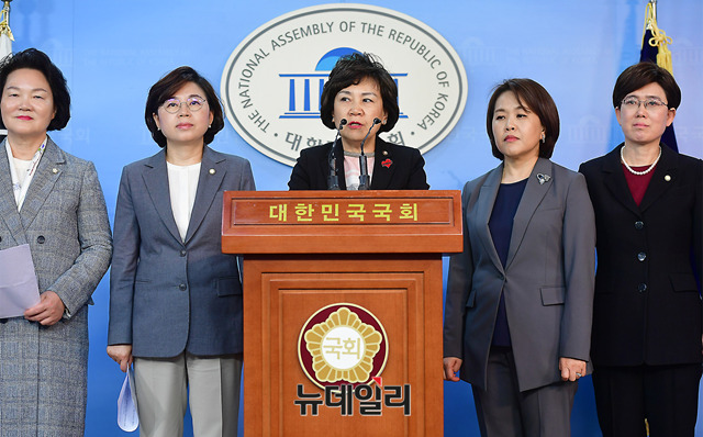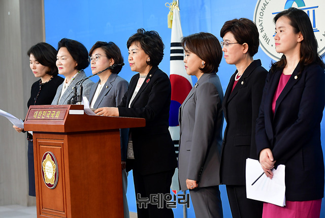 자유한국당 여성의원들이 2일 오후 국회 정론관에서 기자회견을 갖고 "미투 축소 · 은폐한 양승동 KBS 사장 후보자는 사죄하고 사퇴해야한다"고 주장했다.