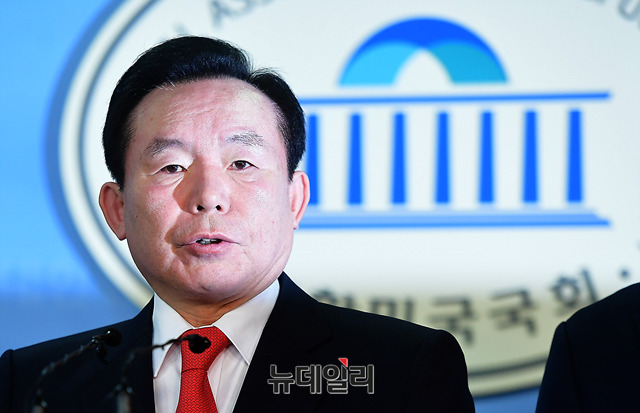 이인제 자유한국당 고문이 3일 오전 국회 정론관에서 6·13 지방선거 충남 도지사 선거 출마 기자회견을 위해 성일종 의원과 입장하고 있다. 지난 2일 홍준표 자유한국당 대표는 이 고문에게 "JP(김종필 전 총리) 이래 충청도가 낳은 가장 큰 인물"이라며 충남도지사 출마를 요청한 바 있다.