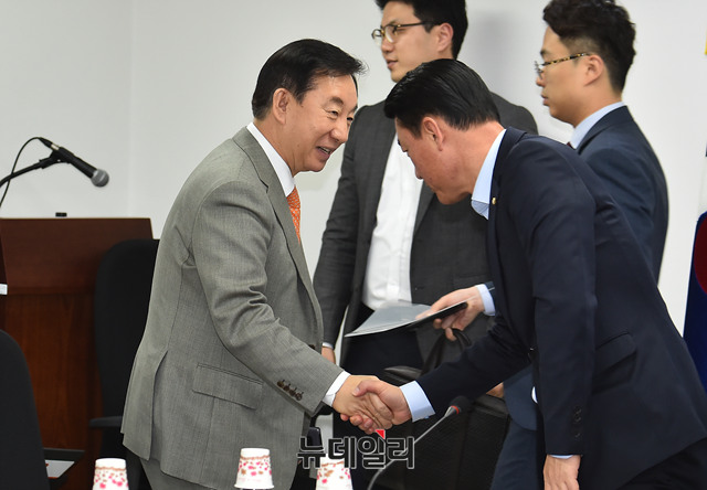 [포토] 악수 나누는 김성태 자유한국당 원내대표