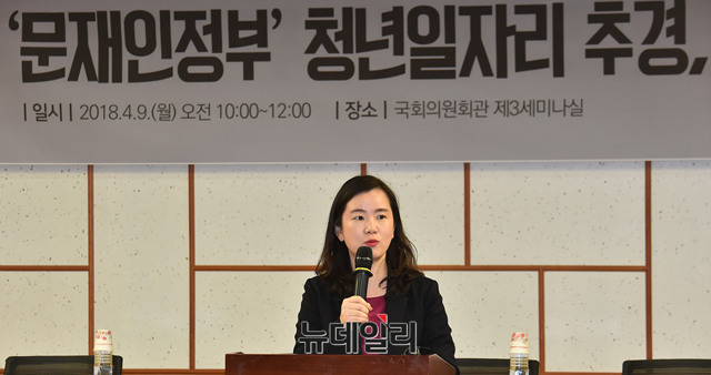신보라 자유한국당 의원의이 9일 오전 국회 의원회관에서 열린 '청년 일자리 추경, 이대로 좋은가?' 토론회에서 인사말을 하고 있다.