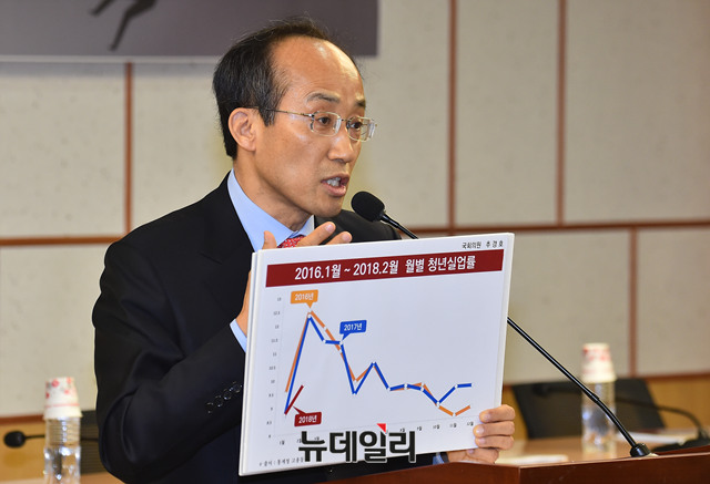 추경호 자유한국당 의원의이 9일 오전 국회 의원회관에서 열린 '청년 일자리 추경, 이대로 좋은가?' 토론회에서 인사말을 하고 있다.