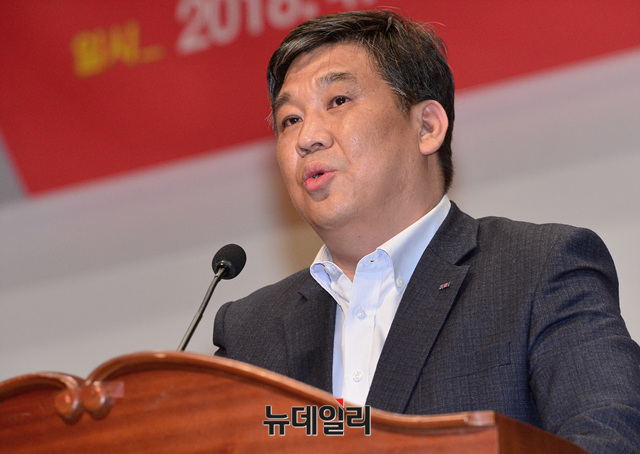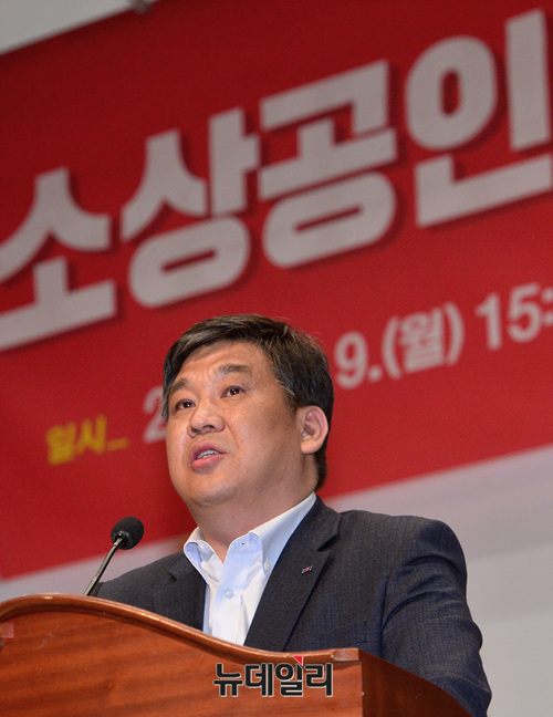 최승재 소상공인연합회장이 9일 오후 국회 의원회관에서 열린 '소상공인 지원과 자립을 위한 국회 대토론회'에 참석해 인사말을 하고 있다. 이날 토론회에는 홍준표 자유한국당 대표, 김성태 원내대표 등이 참석했다.