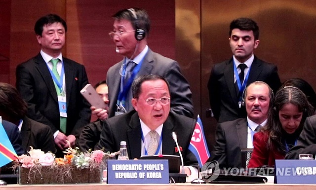 북한 외무상을 수행했던 북한 외교 당국자 역시 지난 10일 연합뉴스 취재진에게 "한반도 비핵화 협상과 관련 단계적·동시적 조치로 풀어갈 수 있을 것"이라고 말했다.그는 지난 5~6일 아제르바이잔 수도 바쿠에서 열린 비동맹운동 각료회의에서 리용호 외무상을 수행했던 인물이다.앞서 김정은이 지난달 방중 기간에 시진핑 중국 국가주석과의 정당회담에서 "한미가 선의로 우리의 노력에 응해 평화 안정의 분위기를 조성해 평화 실현을 위한 단계적, 동시적인 조치를 한다면 한반도 비핵화 문제는 해결될 수 있다"고 말한 것과 일치한다.이로 미뤄볼 때 북중 정상회담 후 비동맹운동 각료회의, 중앙아시아의 옛 소련 국가 투르크메니스탄을 거쳐 러시아를 방문한 리용호 외무상은 물론 근래 유럽연합(EU)을 방문한 김선경 북한 외무성 유럽국장도 이 같은 메시지를 전파하고 있을 것이라는 관측도 나오고 있다.