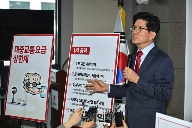 [포토] 공약 설명하는 김문수 자유한국당 서울시장 후보