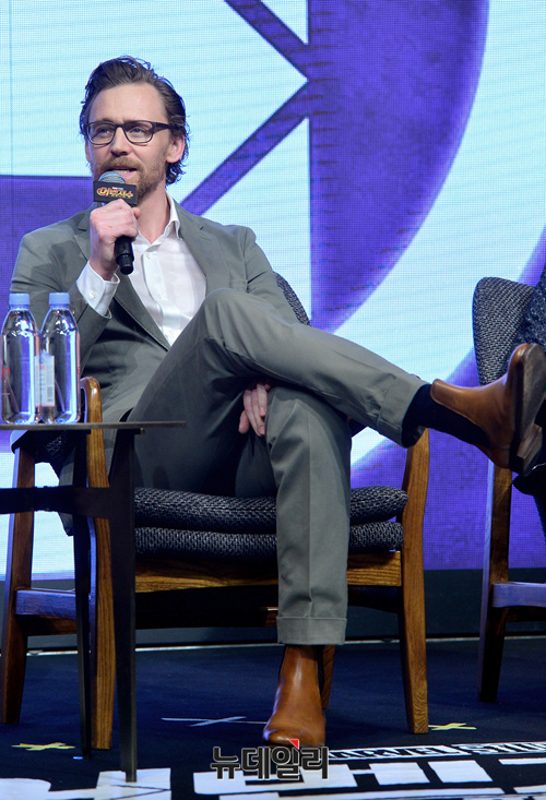 배우 톰 히들스턴(Tom Hiddleston)이 12일 오전 서울 종로구 포시즌호텔에서 열린 영화 '어벤져스: 인피니티워(Avengers: Infinity War)' 내한 기자간담회에 참석해 질문에 답하고 있다. 톰 히들스턴은 토르의 동생 로키 역을 맡았다. 지난 2013년에 이어 세 번째 내한이다.'어벤져스 : 인피니트워'는 우주를 관장할 수 있는 힘을 가진 인피니티스톤을 모아 우주를 장악하려는 빌런 타노스와 그를 막으려는 새로운 조합의 어벤져스가 대결을 펼치는 이야기를 담았다. 오는 25일 개봉 예정이다.