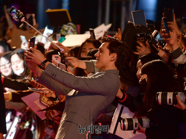 [포토] 팬이 건넨 휴대폰 떨어뜨린 스파이더맨