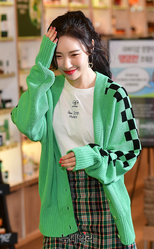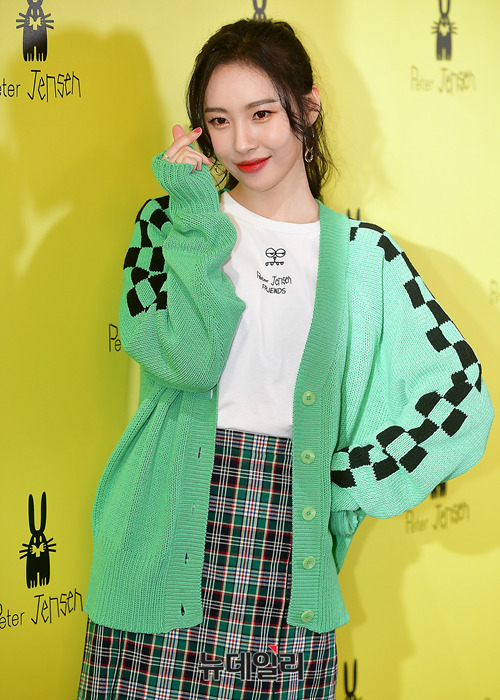 가수 선미가 13일 오전 서울 중구 명동 눈스퀘어점 1층에 오픈한 '피터 젠슨(Peter Jensen)' 매장을 방문해 포토타임을 갖고 있다.