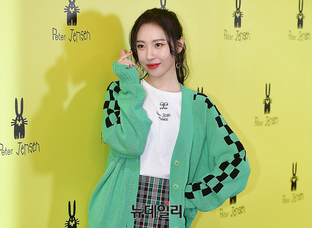 가수 선미가 13일 오전 서울 중구 명동 눈스퀘어점 1층에 오픈한 '피터 젠슨(Peter Jensen)' 매장 오픈을 축하하기 위해 입장하고 있다.