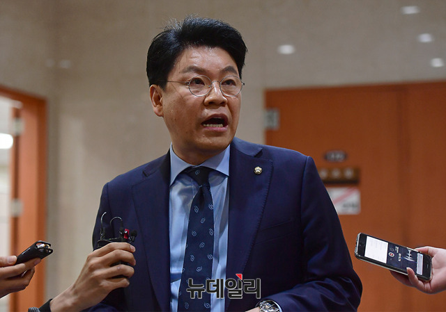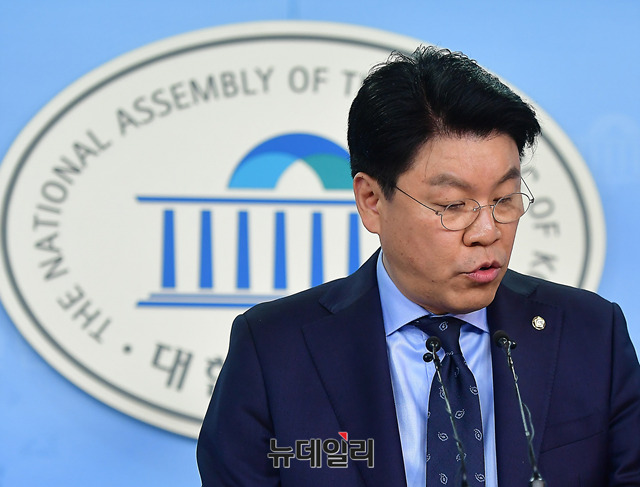 장제원 자유한국당 수석대변인이 13일 오후 국회 정론관에서 문재인 대통령과 홍준표 당대표의 청와대 단독 회동과 관련해 브리핑을 하고 있다.