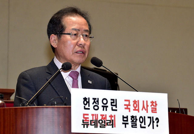[포토] 영수회담 결과 설명하는 홍준표 자유한국당 대표