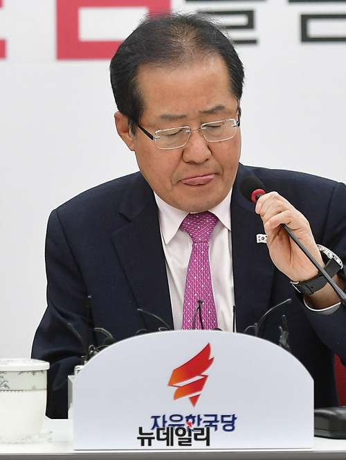 홍준표 자유한국당 대표가 13일 오후 문재인 대통령과 단독 회담을 마치고 의원총회 참석 직후 국회 당 대표실에 자리하고 있다.