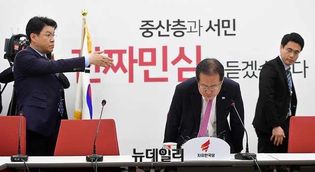 [포토] 영수회담 관련 기자간담회 자리한 홍준표