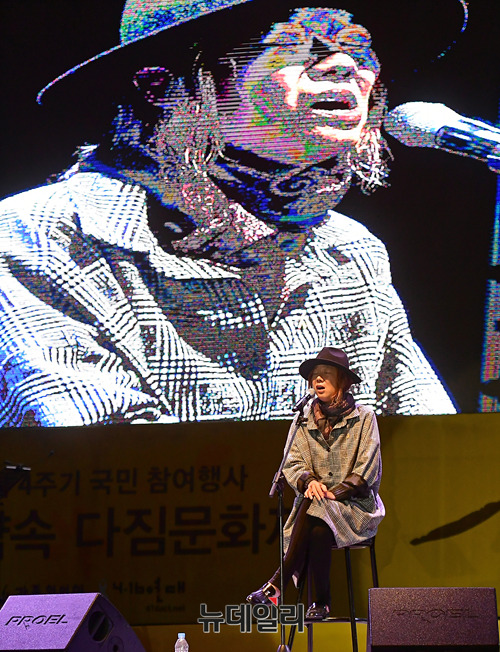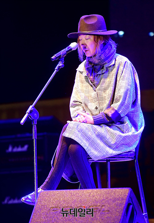 가수 이상은이 14일 오후 광화문 북측광장에서 열린 세월호 사고 4주기 추모행사 무대에 올라 노래를 하고 있다.