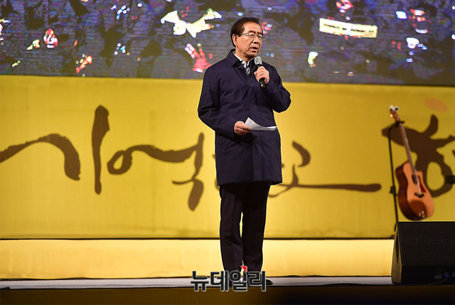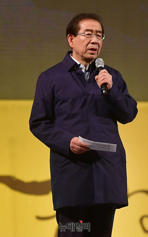 박원순 서울시장이 14일 오후 7시부터 광화문 북측광장에서 진행된 세월호 사고 4주기 추모행사에서 인사말을 하고 있다.