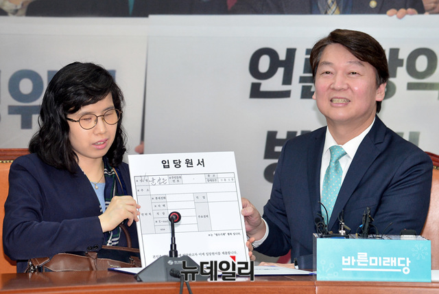 [포토] 바른미래당 입당하는 윤상은-김충현