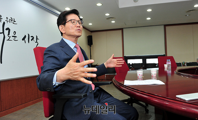 자유한국당 서울시장 후보로 확정된 김문수 전 경기도지사가 16일 오후 서울 여의도당사에서 뉴데일리와 인터뷰를 갖고 있다. 김 전 지사는 지난 11일 "좌파 광풍을 막겠다"며 서울시장에 출사표를 던졌다.