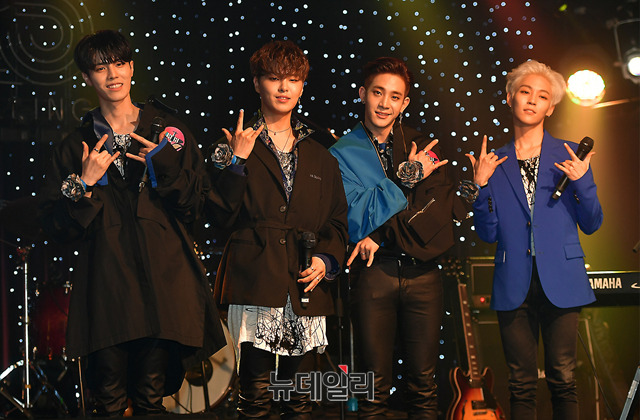 4인조 밴드 '더 로즈(The Rose)'가 16일 오후 서울 마포구 홍대 롤링홀에서 첫 미니 앨범 'Void(보이드)' 컴백 쇼케이스에서 포토타임을 갖고 있다.