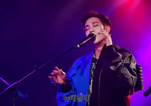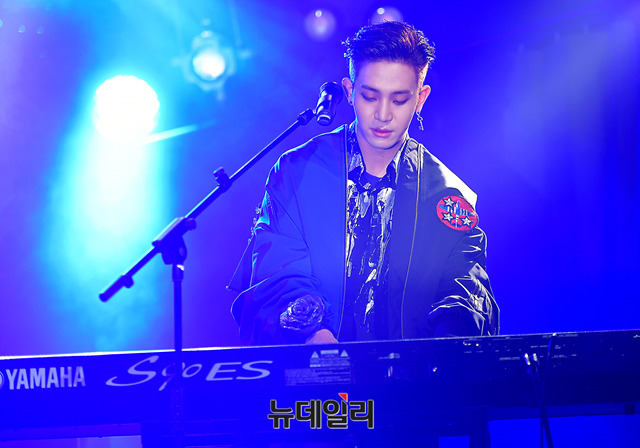 4인조 밴드 '더 로즈(The Rose)'의 멤버 도준이 16일 오후 서울 마포구 홍대 롤링홀에서 열린 첫 미니 앨범 'Void(보이드)' 컴백 쇼케이스에서 수록곡 무대를 선보이고 있다.