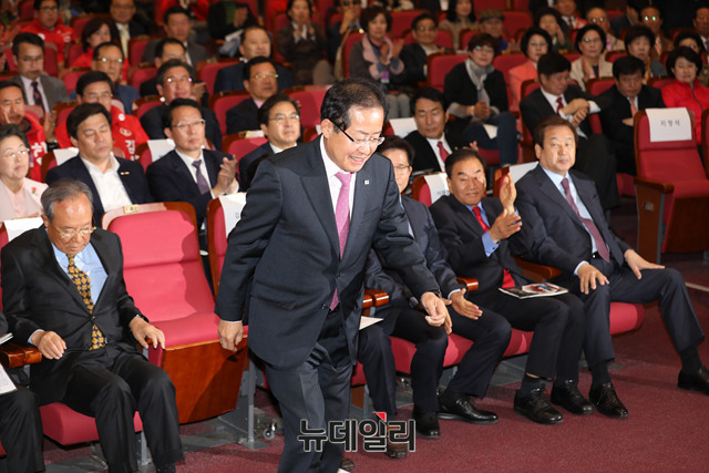 홍준표 자유한국당 대표가 17일 오전 국회 의원회관에서 열린 '사회주의 개헌-정책 저지를 위한 대국민 시국강연회'에서 인사말을 하고 있다.