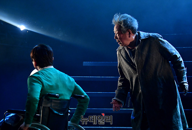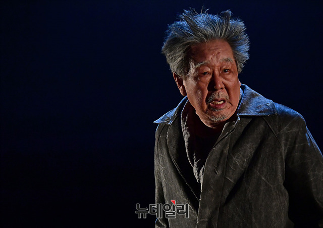 배우 최불암이 17일 오후 서울 서초구 예술의전당 자유소극장에서 열린 연극 '바람 불어 별이 흔들릴 때(극작 김민정, 연출 안경모)' 프레스 리허설에서 열연하고 있다.