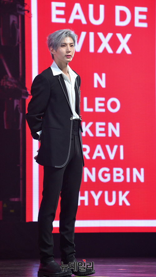 그룹 빅스(VIXX : 라비, 켄, 레오, 홍빈, 엔, 혁) 레오가 17일 오후 서울 광진구 예스24라이브홀에서 열린 세 번째 정규앨범 '오드빅스(EAU DE VIXX)' 발매 기념 쇼케이스에 참석해 포즈를 취하고 있다.오드빅스는 시각·청각으로 다양하게 빅스만의 향을 전하겠다는 의미를 담았다. 타이틀곡 '향(Scentist)'을 포함 총 12곡이 수록됐다.'향'은 향기를 뜻하는 센트(Scent)와 예술적으로 표현하는 아티스트(Artist)의 합성어로 매혹적인 사운드와 향기에 대한 시적 표현이 특징이다. 음원은 오늘(17일) 오후 6시에 공개될 예정이다.