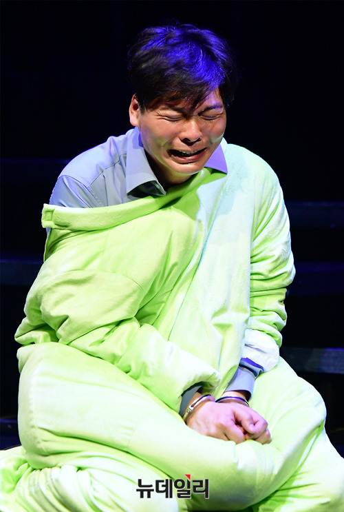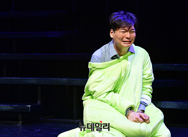 배우 문창완이 17일 오후 서울 서초구 예술의전당 자유소극장에서 열린 연극 '바람 불어 별이 흔들릴 때(극작 김민정, 연출 안경모)' 프레스 리허설에서 열연하고 있다. 문창완은 진석 역을 맡았다.
