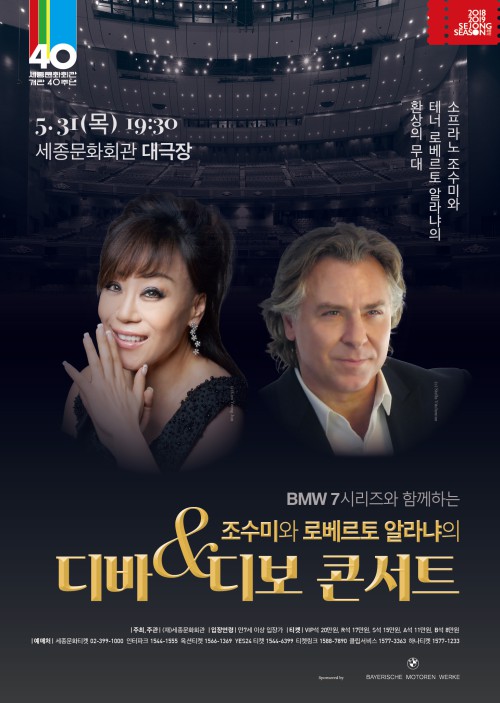 세종문화회관은 1978년 개관이래 국내 공연문화예술계를 이끌며 최고의 공연을 선보여왔다. 이번 공연은 세계적인 소프라노 조수미와 유럽에서 활약중인 테너 로베르토 알라냐가 무대에 선다.