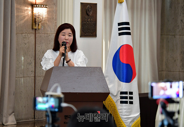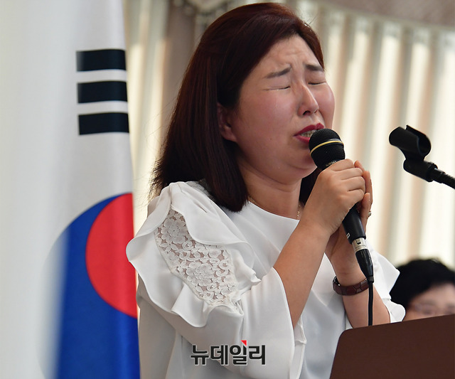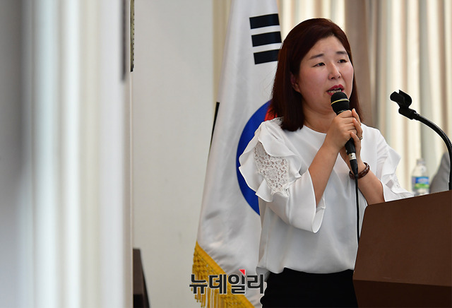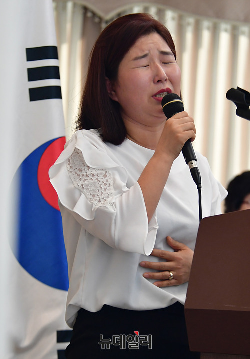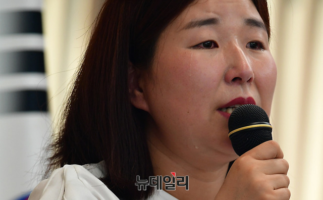 김지은 전 북한정치범수용소 수감자가 18일 오후 서울 중구 한국프레스센터 프레스클럽에서 '남북, 미북 정상회담과 북한인권문제'를 주제로 열린 한국자유회의 제6차 대토론회에서 수감생활을 증언하는 도중 눈물을 흘리고 있다.이날 대토론회에는 제성호 중앙대 교수, 이미일 6.25전쟁납북인사가족협의회 이사장, 김정애 국제PEN망명북한펜센터 이사장이 나서 '북한 인권, 남북-미북 정상회담의 의제화 해야', '한반도 평화와 종전의 선결요건', '펜은 총보다 강하다'를 주제로 각각 발제를 맡았다.이어 진행된 토론에는 김영호 성신여대 교수, 이희문 북한자유인권 글로벌네트워크 대표, 조성환 경기대 교수가 나섰다. 토론회는 한국자유회의와 바른사회시민회의가 공동주최했다.