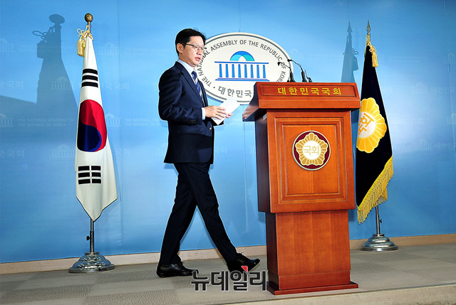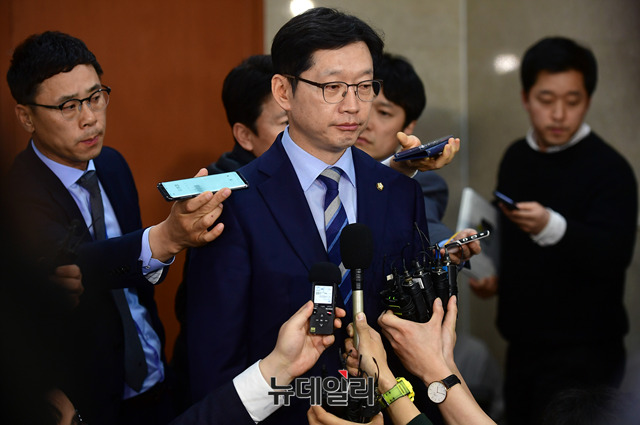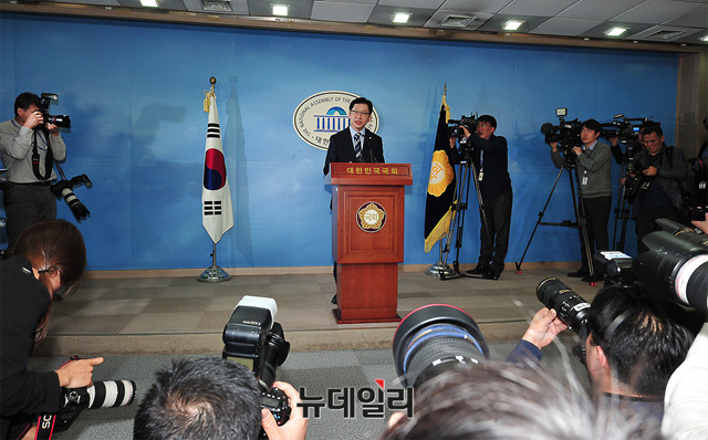 김경수 더불어민주당 경남지사 예비후보가 19일 국회 정론관에서 긴급 기자회견을 열고 이번 지방선거에 당당히 도전할 것이라고 했다. 앞서 김 예비후보는 오전 경남 진주에 위치한 경남도청 서부청사에서 출마선언을 앞두고 돌연 서울로 이동해 기자회견에 참석했다.