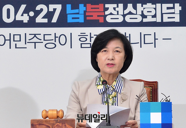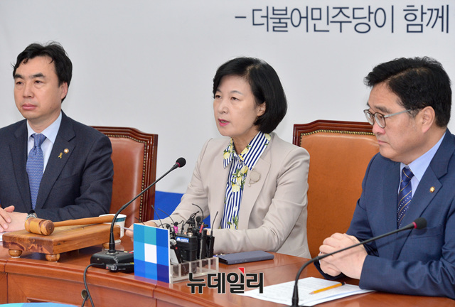 추미애 더불어민주당 대표가 23일 오전 국회에서 열린 최고위원회의에서 참석해 발언하고 있다.