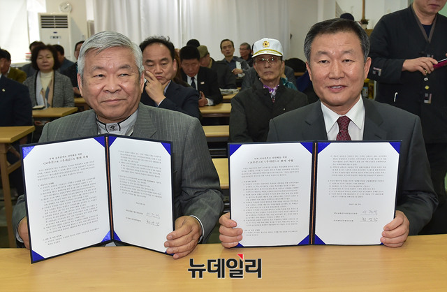 좋은교육감후보추대본부와 우리교육감추대시민연합이 23일 오후 서울 종로구 자유민주국민연합 회의실에서 기자회견을 열고 교추본-우리감 공동위원회를 구성한다고 밝히고 있다.