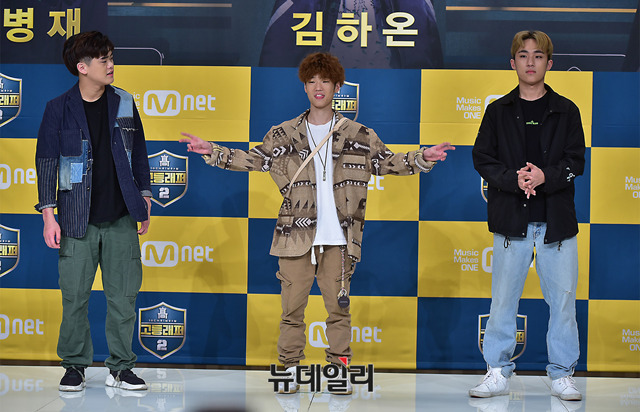 이병재, 김하온, 이로한(왼쪽부터)이 24일 오후 서울 영등포 타임스퀘어 아모리스홀에서 열린 Mnet '고등래퍼2' 종영간담회에서 포토타임을 갖고 있다. 이날 간담회에는 1위를 차지한 김하온(그루비룸팀), 2위 이로한(행주/보이비팀), 3위 이병재(그루비룸팀)와 전지현PD, 김태은 CP가 참석했다.