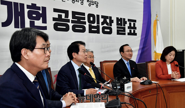 이날 행사에는 김광수 민주평화당, 김관영 바른미래당 헌정특위 간사, 천정배 민주평화당 헌정특위 위원장, 김동철 바른미래당, 노회찬 정의당 원내대표, 심상정 정의당 헌정특위 위원장이 참석했다.
