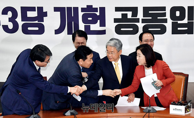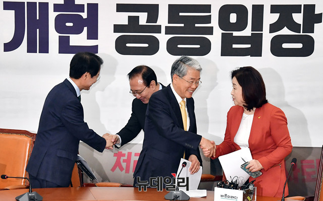 이날 행사에는 김광수 민주평화당, 김관영 바른미래당 헌정특위 간사, 천정배 민주평화당 헌정특위 위원장, 김동철 바른미래당, 노회찬 정의당 원내대표, 심상정 정의당 헌정특위 위원장이 참석했다.