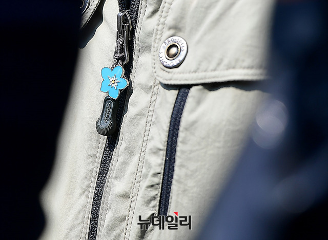 [포토] 납북피해 가족들 가슴에 단 물망초 배지