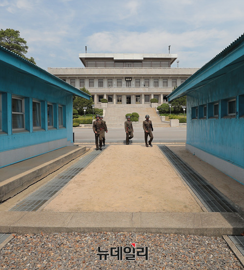 2018 남북정상회담을 하루 앞둔 26일 오후 문재인 대통령이 김정은을 맞이할 군사정전위원회의실이 보이고 있다. (사진=한국공동사진기자단)