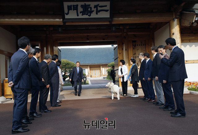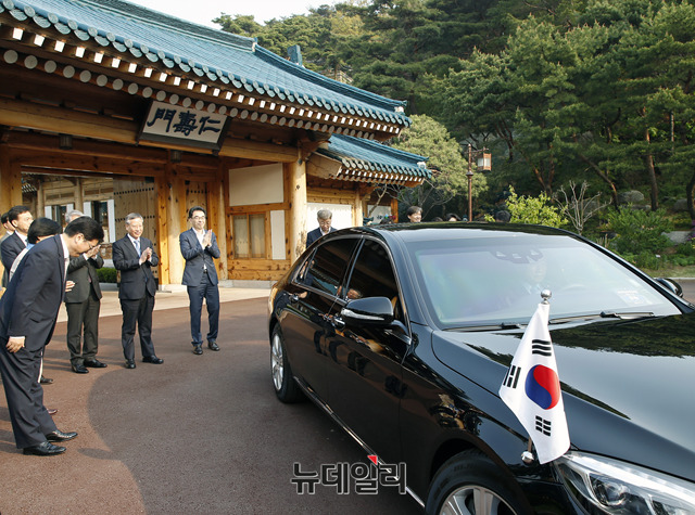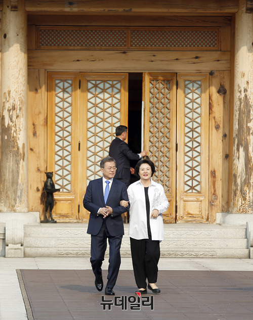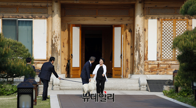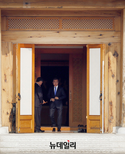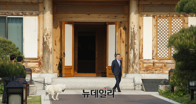 문재인 대통령이 27일 오전 경기 파주시 판문각에서 열린 2018 남북정상회담을 위해 청와대 관저에서 나오고 있다. (사진=한국공동사진기자단)