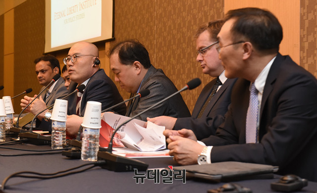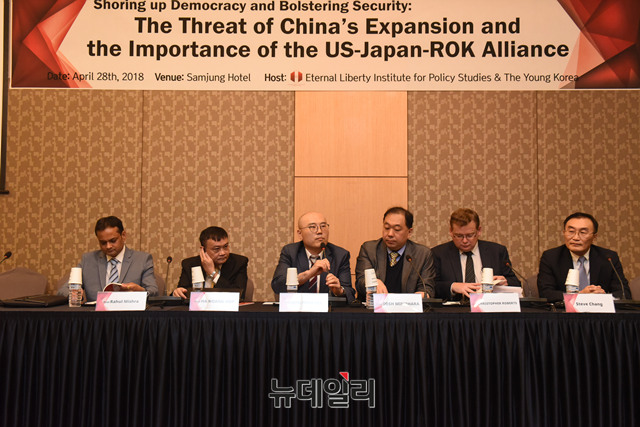 '중국팽창의 위험과 한미일 동맹의 중요성 토론회'가 28일 오후 서울 강남구 삼청호텔에서엘(EL)정책연구원 주최로 열리고 있다.