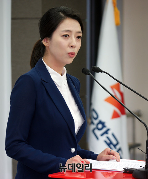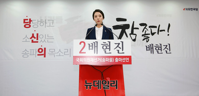 배현진 전 MBC 아나운서가 30일 오전 서울 여의도 자유한국당 당사에서 기자회견을 열고, 서울 송파을 국회의원 재선거 출마 선언을 하고 있다.