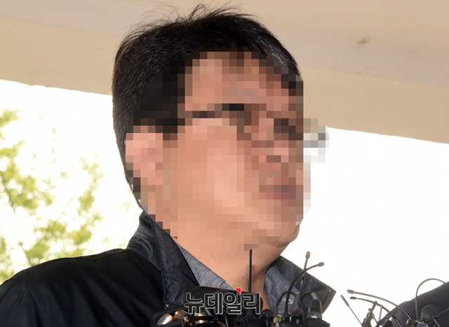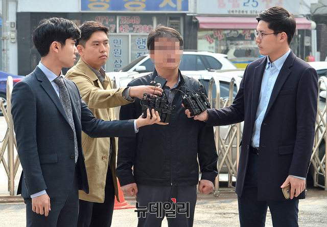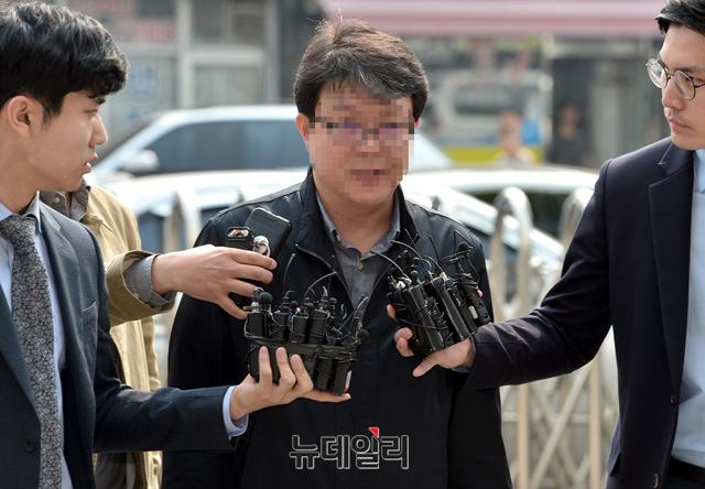 김경수 더불어민주당 의원 전 보좌관 한 모씨가 30일 오전 서울 중랑구 서울경찰청 지능범죄수사대에 출석해 질문에 답하고 있다.