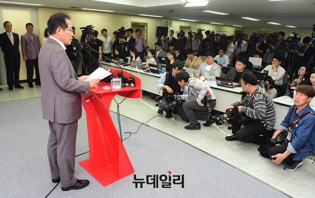 [포토] 4.27 남북정상회담 관련 기자회견 하는 홍준표 대표