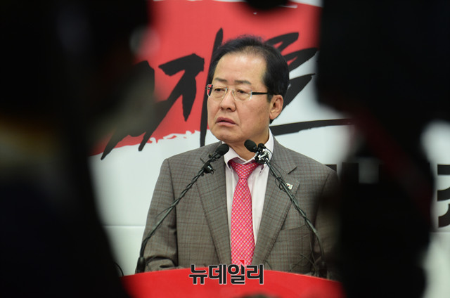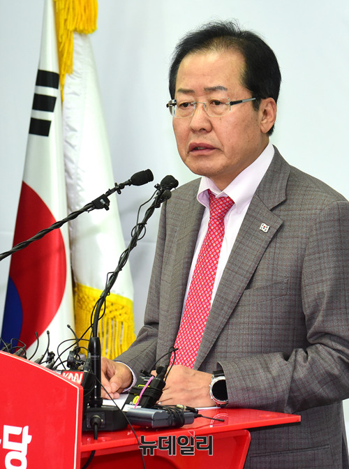 [포토] 기자들의 질문에 답하는 홍준표 자유한국당 대표