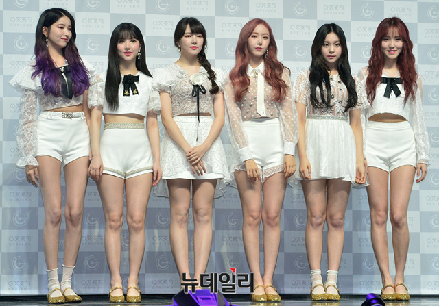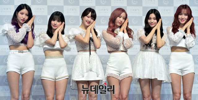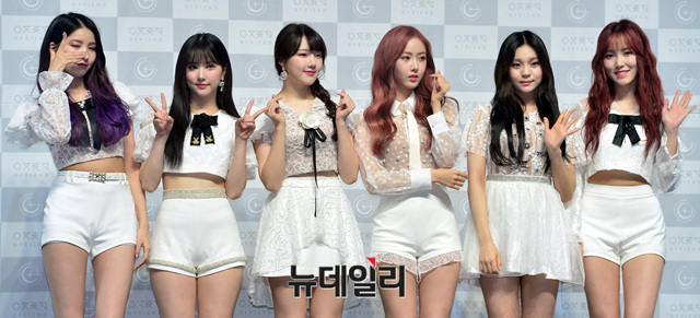 걸그룹 여자친구(소원, 예린, 은하, 유주, 신비, 엄지)가 30일 오후 서울 광진구 예스24라이브홀에서 열린 여섯 번째 미니앨범 '타임 포 더 문나잇(Time for the moon night)' 발매 기념 쇼케이스에 참석해 포즈를 취하고 있다.