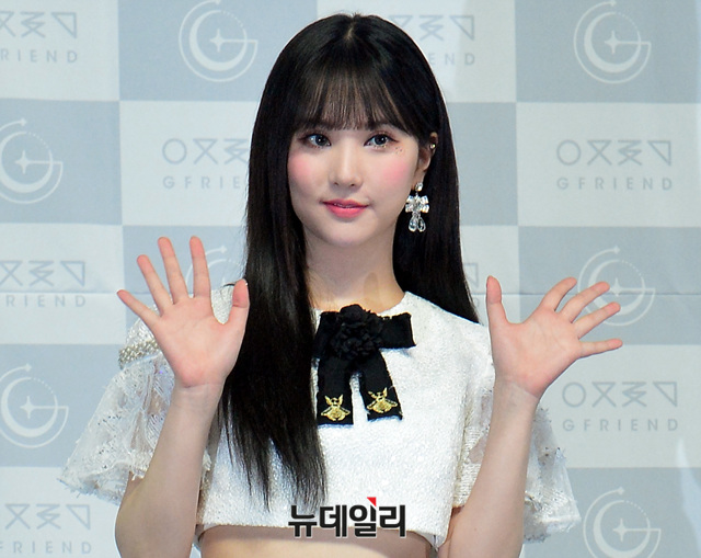 그룹 여자친구(소원, 예린, 은하, 유주, 신비, 엄지) 은하가 30일 오후 서울 광진구 예스24라이브홀에서 열린 여섯 번째 미니앨범 '타임포더문나잇(Time for the moon night)' 발매 기념 쇼케이스에 참석해 포즈를 취하고 있다.