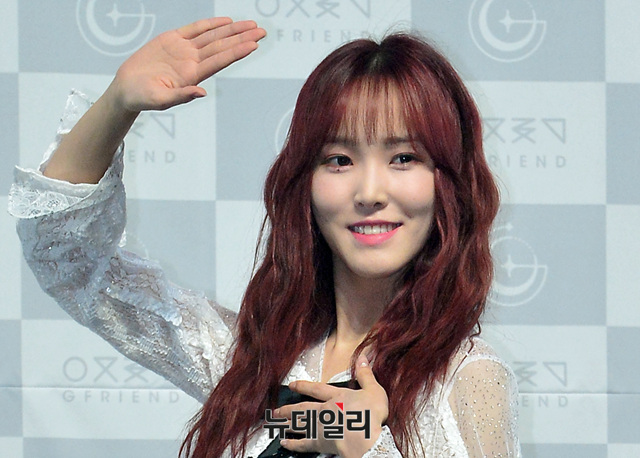 그룹 여자친구(소원, 예린, 은하, 유주, 신비, 엄지) 유주가 30일 오후 서울 광진구 예스24라이브홀에서 열린 여섯 번째 미니앨범 '타임포더문나잇(Time for the moon night)' 발매 기념 쇼케이스에 참석해 포즈를 취하고 있다.