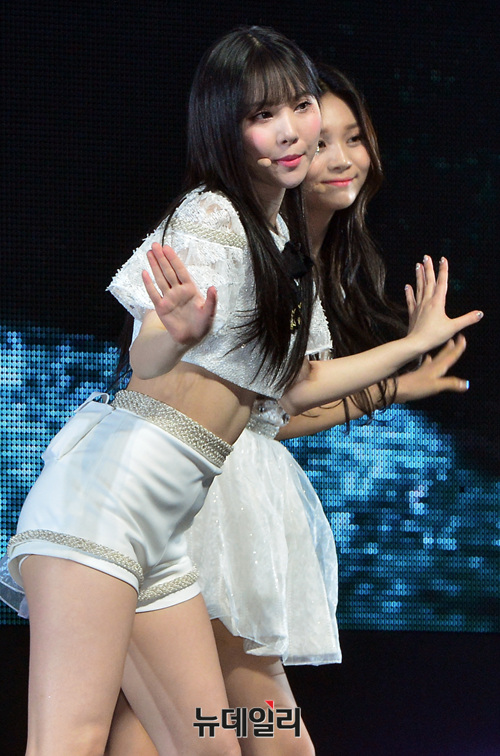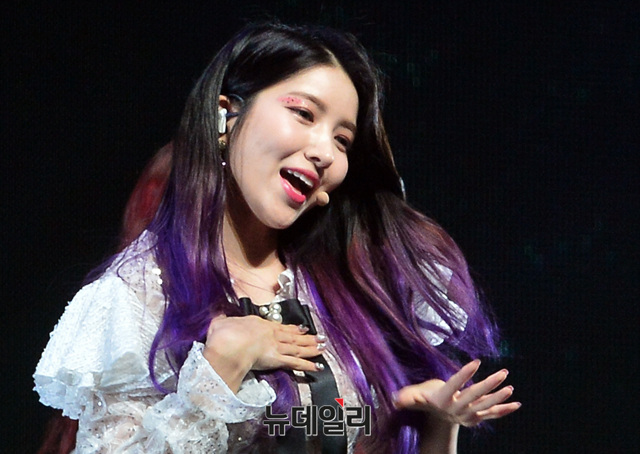 그룹 여자친구(소원, 예린, 은하, 유주, 신비, 엄지) 신비가 30일 오후 서울 광진구 예스24라이브홀에서 열린 여섯 번째 미니앨범 '타임포더문나잇(Time for the moon night)' 발매 기념 쇼케이스에 참석해 신곡 무대를 선보이고 있다.